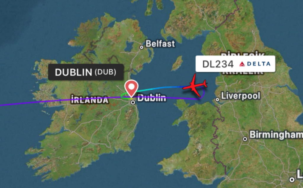 Delta Airlines flight DL234, operating from New York to Tel Aviv, made an emergency landing at Dublin Airport after a passenger experienced a serious medical issue. Approximately four hours into the flight, the crew declared an emergency by transmitting the international distress code “Squawk 7700” and requested an immediate landing.
